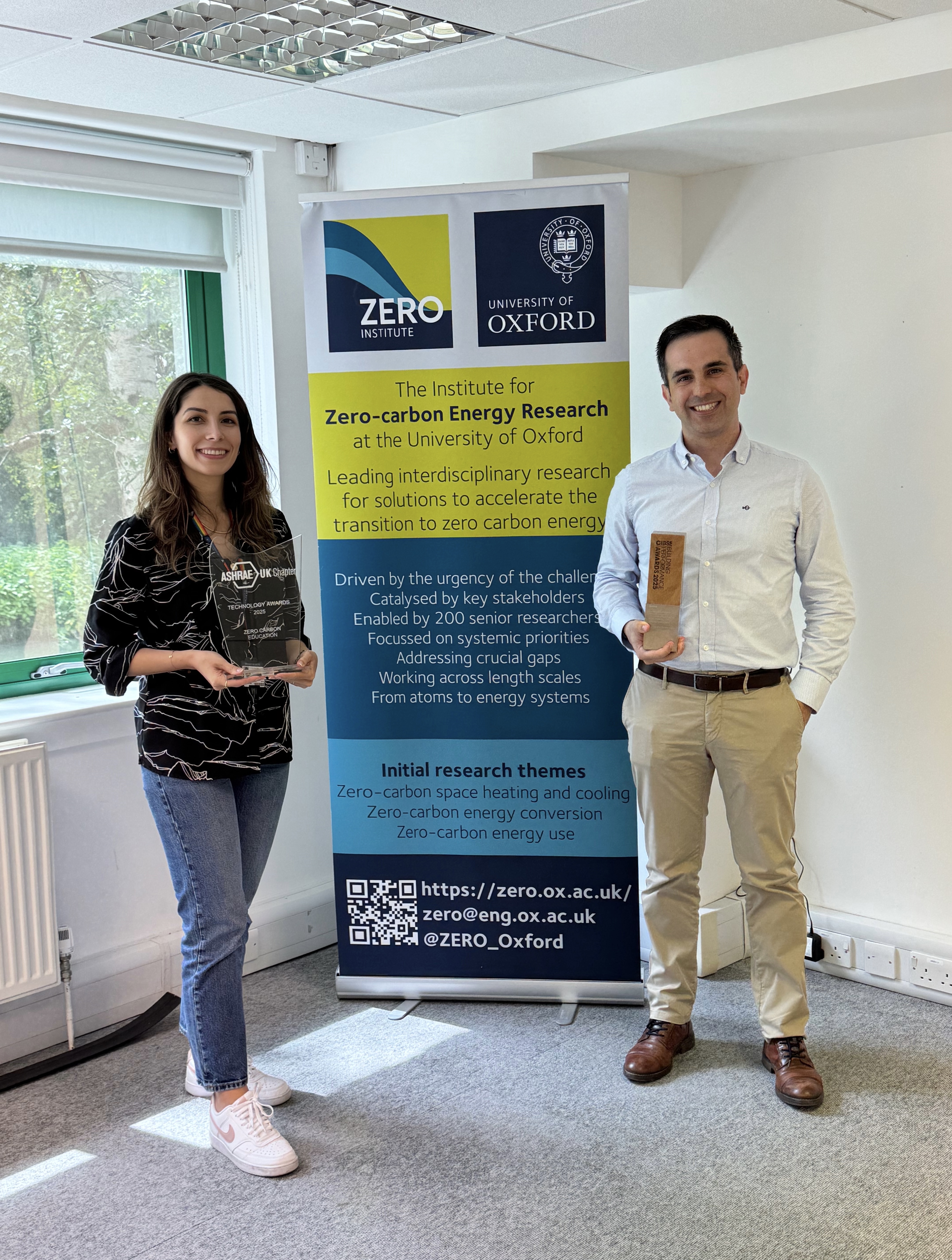 - Development and teaching of the Zero-Carbon Energy Buildings module as part of the ZERO Institute at the University of Oxford, received the 2025 CIBSE Building Performance Learning and Development & ASHRAE Zero Carbon Education Awards.